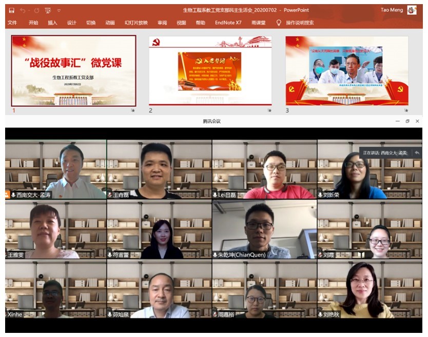 2020-07-062020年7月2日星期四下午,生物工程系的全体党员相聚在云端,在支部书记孟涛同志的主持下,共同开展了“战疫故事汇”微党课的学习。会议...