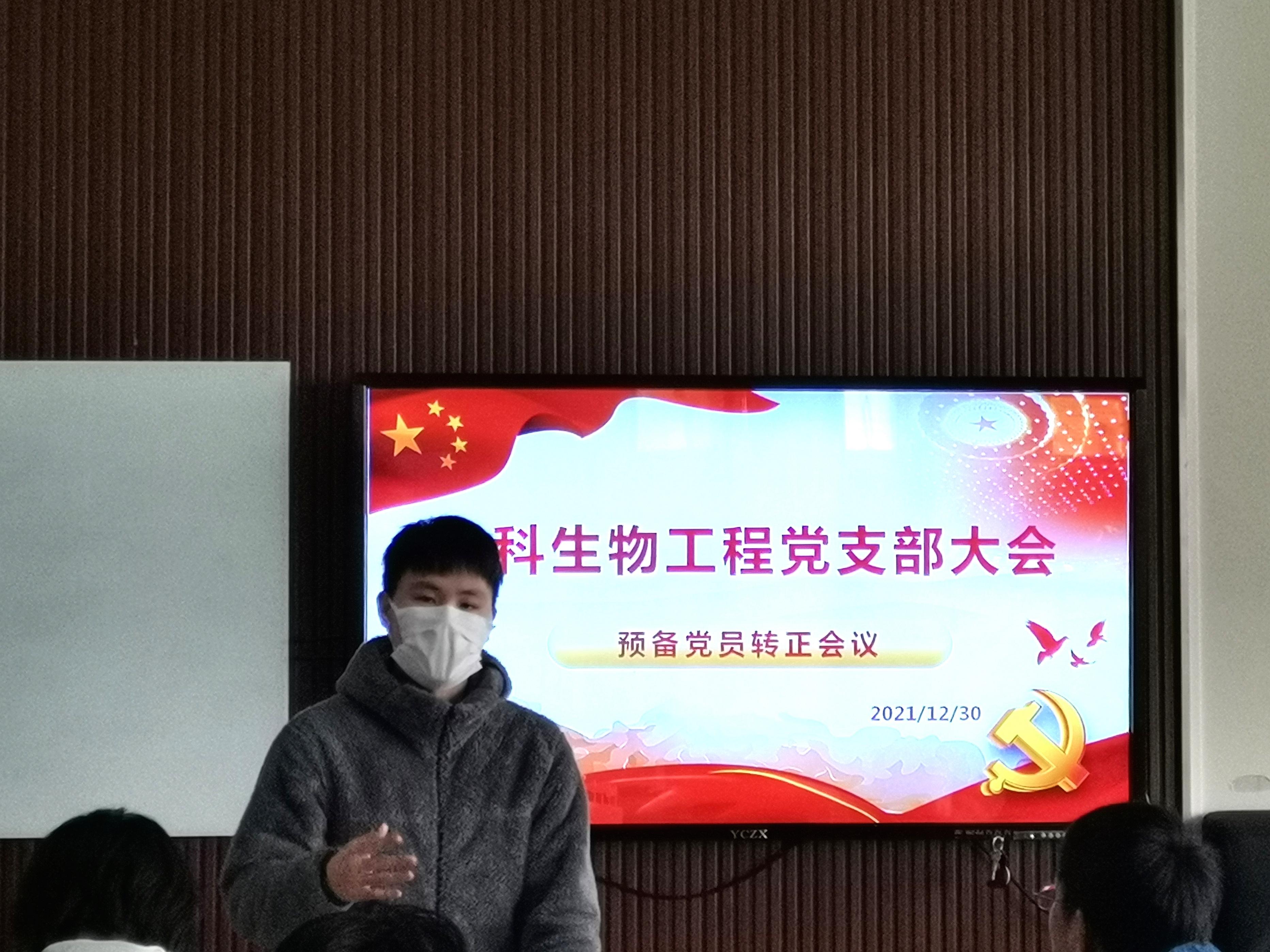 2021-12-312021年12月30日下午4:00,本科生物工程党支部在x6423顺利召开了支部大会,讨论关于戴春雨等9名预备党员转正事宜。参会人员有党委副书记...