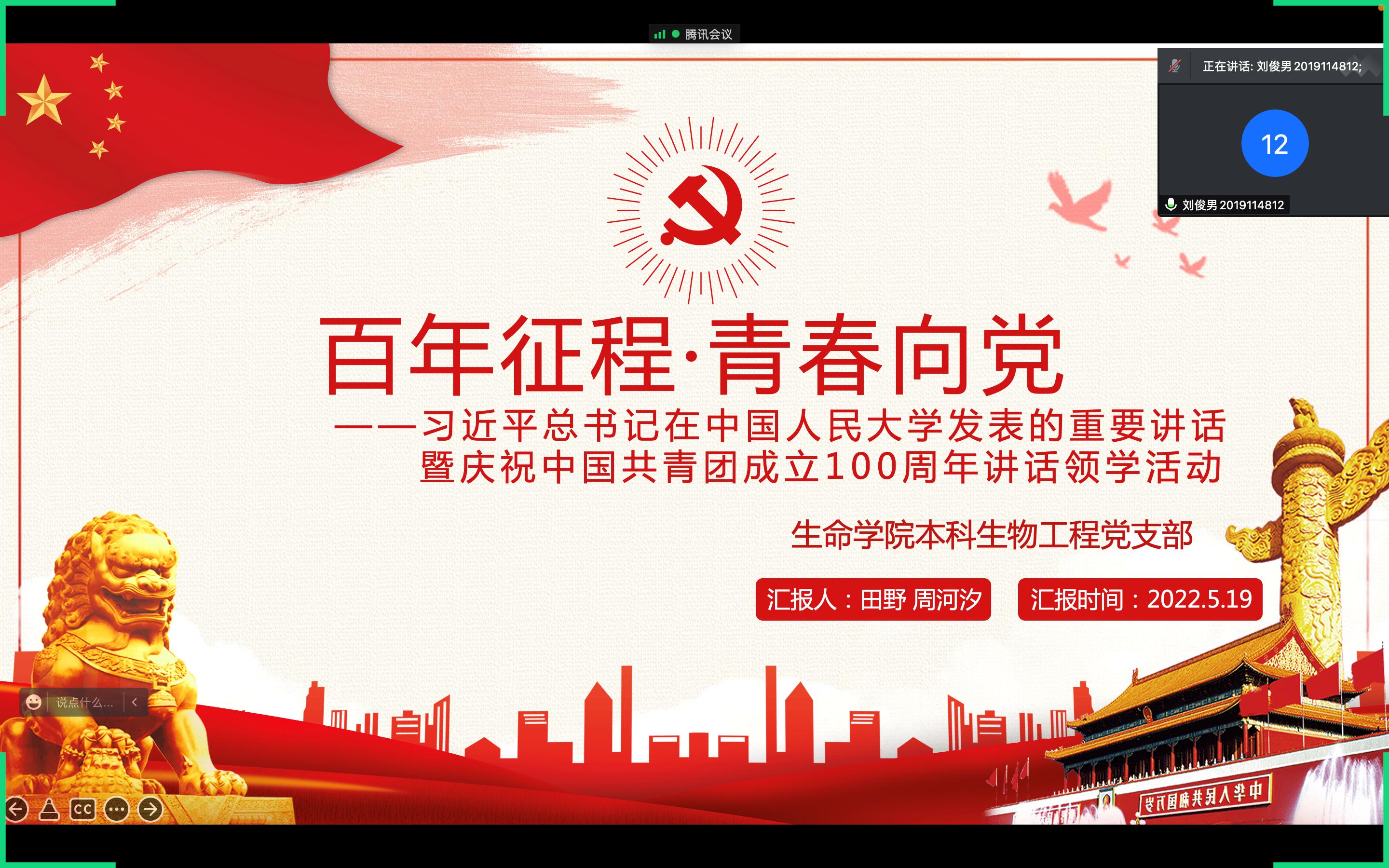 2022-05-23为深入学习习近平总书记重要讲话精神,本科生物工程党支部于5月19日晚19:30组织开展学习贯彻习近平总书记重要讲话精神“百年征程·青春向党...