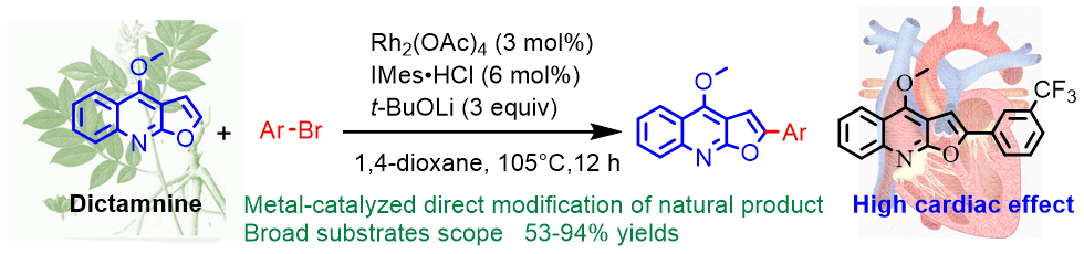 “小分子天然药物” 团队的研究成果“Rhodium-Catalyzed Direct Arylation of Furopyridine: Synthesis and the Cardiac Effects of Dictamnine Derivatives”。本研究在国家自然科学基金(31870329)和美国国家科学基金(CHE-1902509)的资助下完成。麻豆社