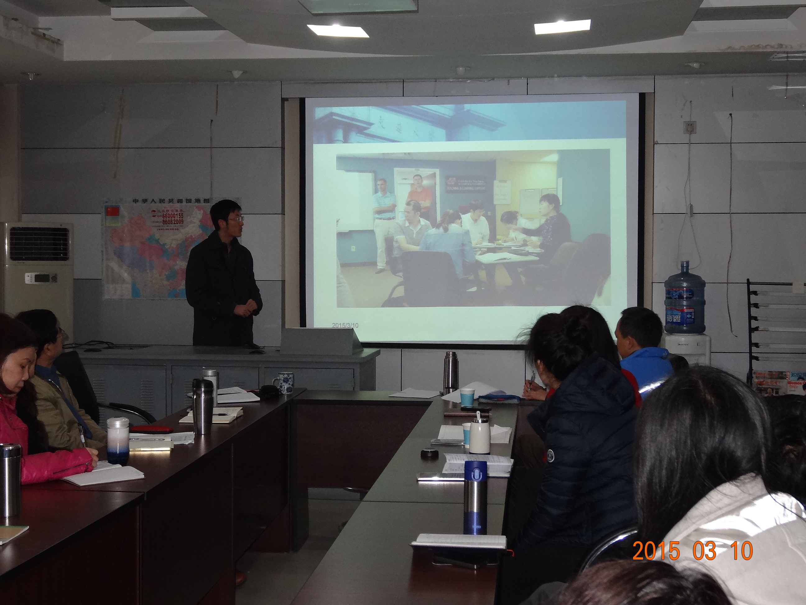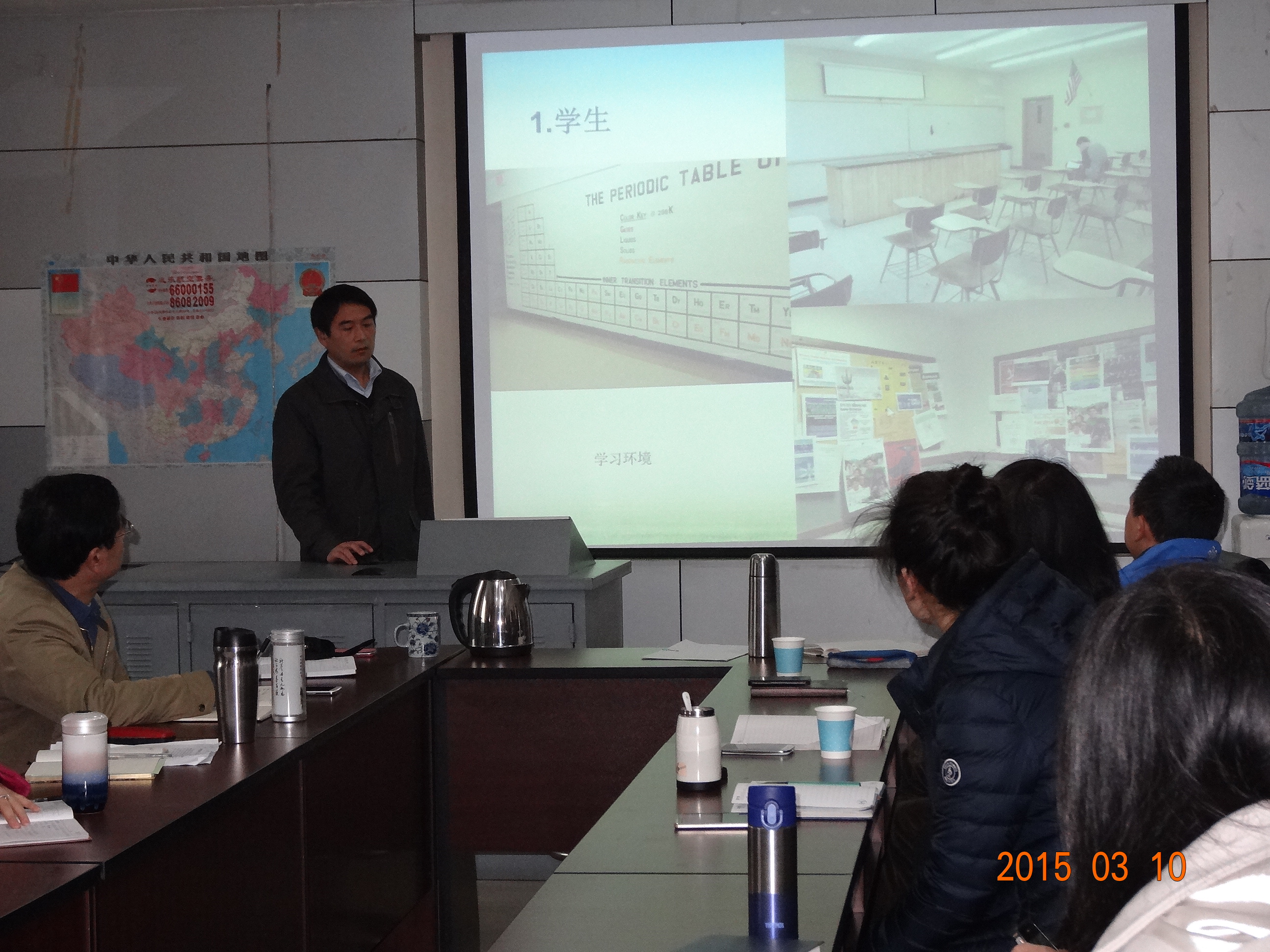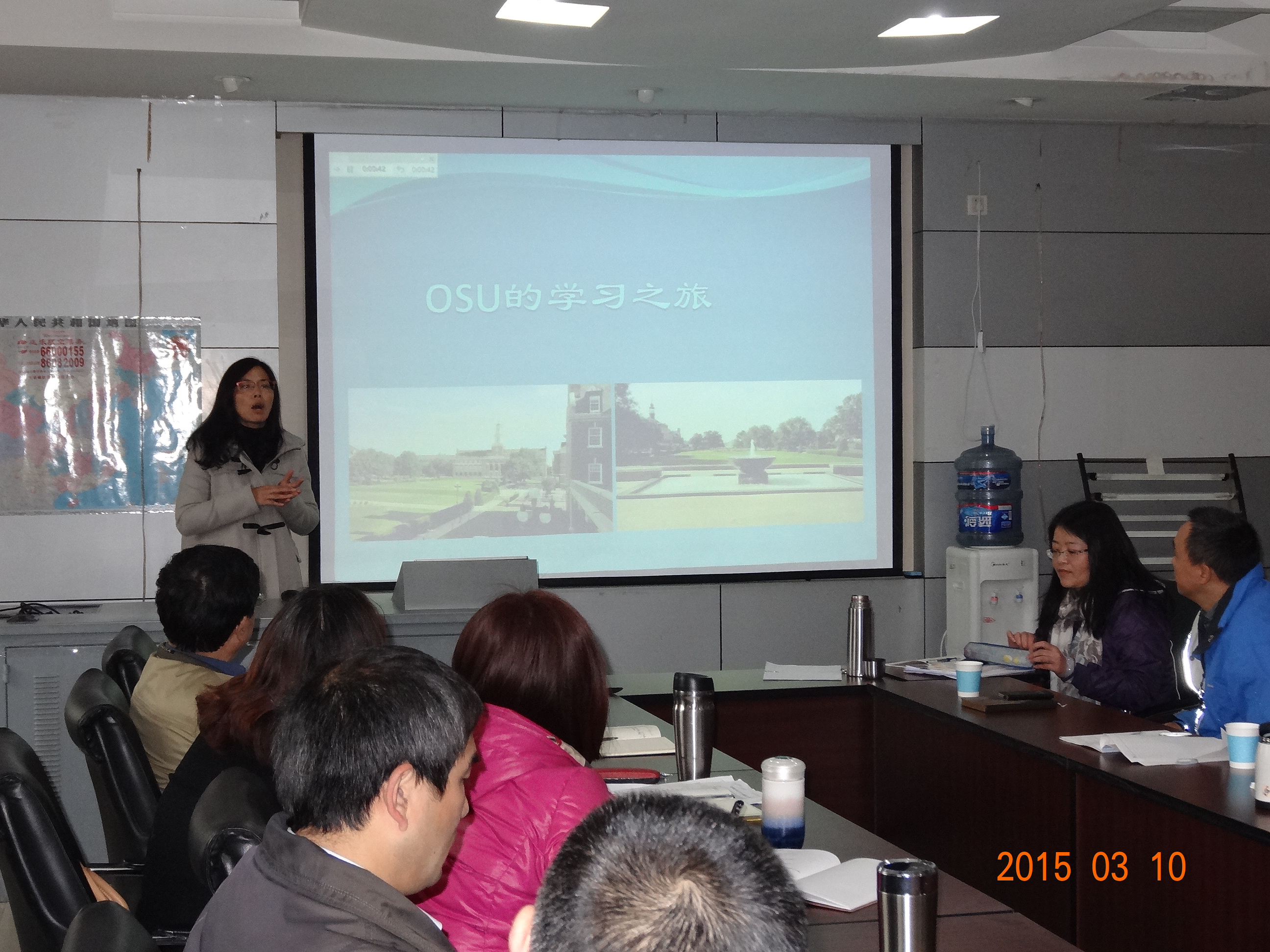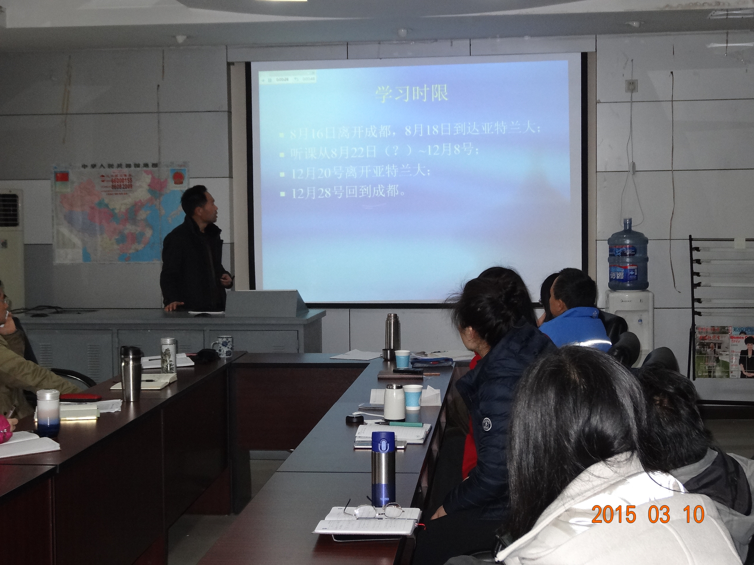 2015年3月10日上午9点,学院召开了出国教师学习汇报会。学院助理及以上党政班子成员、工会主席、系主任、办公室主任出席了会议。