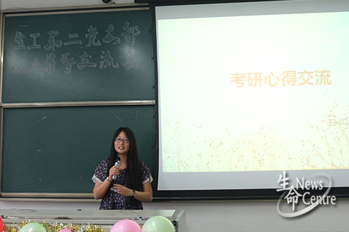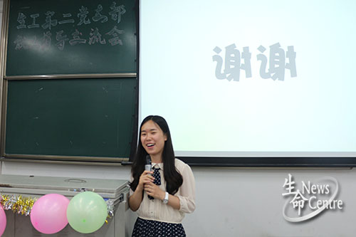 本科生工第二党支部指导老师张敬文、兄弟党支部书记赵雷蕾、黄灿等出席大会,而2011级保送至浙江大学的彭琪、考研至四川大学生物治疗国家重点实验室的尹丹丹及成功签约中国联通的张晓帆作为主讲嘉宾,本次交流会由预备党员2013级生工四班王漫丽同志主持。