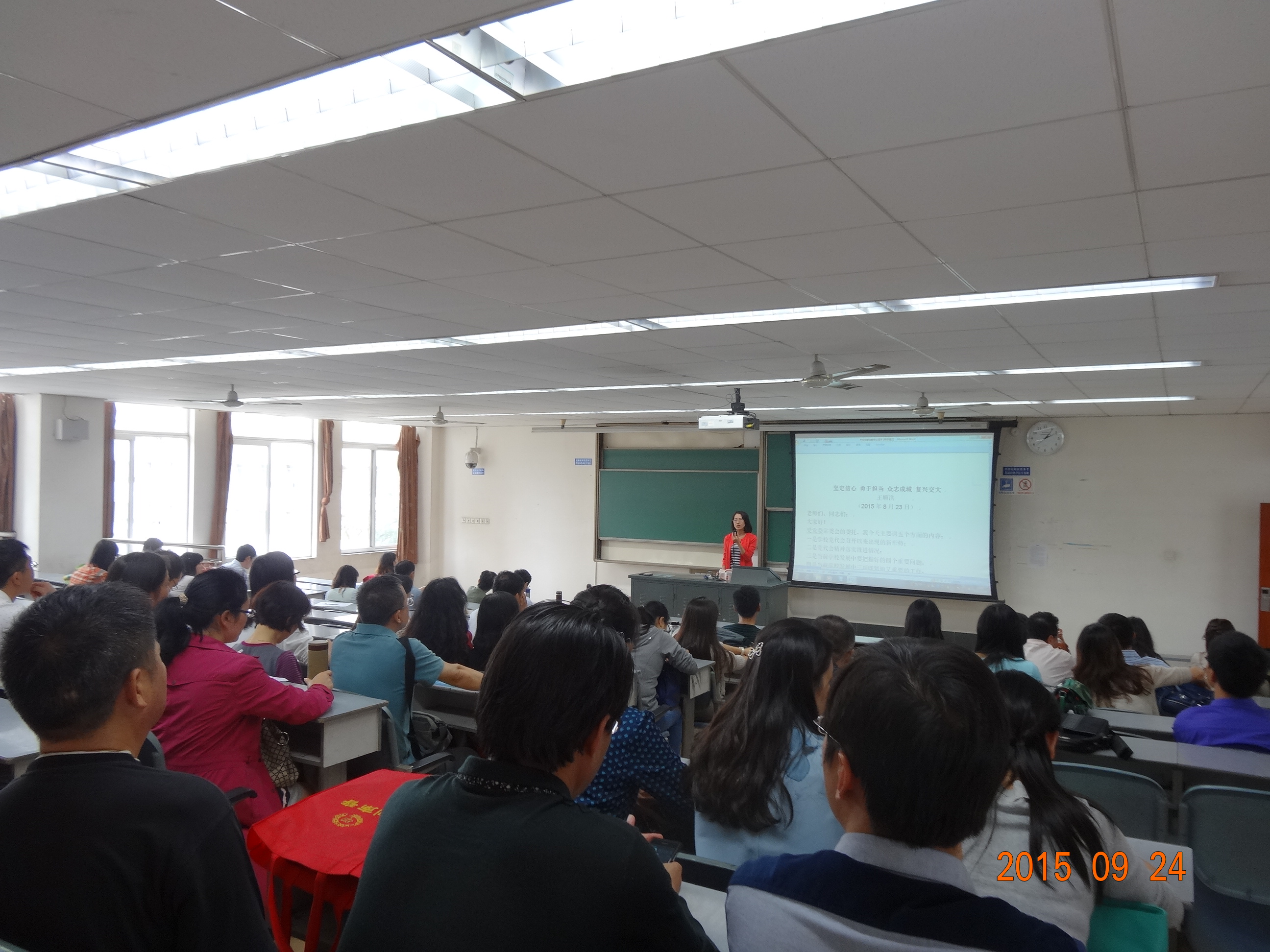 会议第二项内容是传达学校9月10日召开的2015—2016学年第一学期干部大会精神。李卓慧同志重点传达了学校上半年完成的重点工作,存在的不足,并重点介绍了学校2015年下半年63项重点工作。同时对接学校重点工作,结合学院工作实际,强调了学院工作的落实。随着学校的工作任务越来越重,学院要求全体领导干部要勇于担当,把自己分管领域的工作做好做优;全体教师要增强大局意识和全局意识,用实际行动努力工作,推动学校学院发展,为120周年校庆献礼。