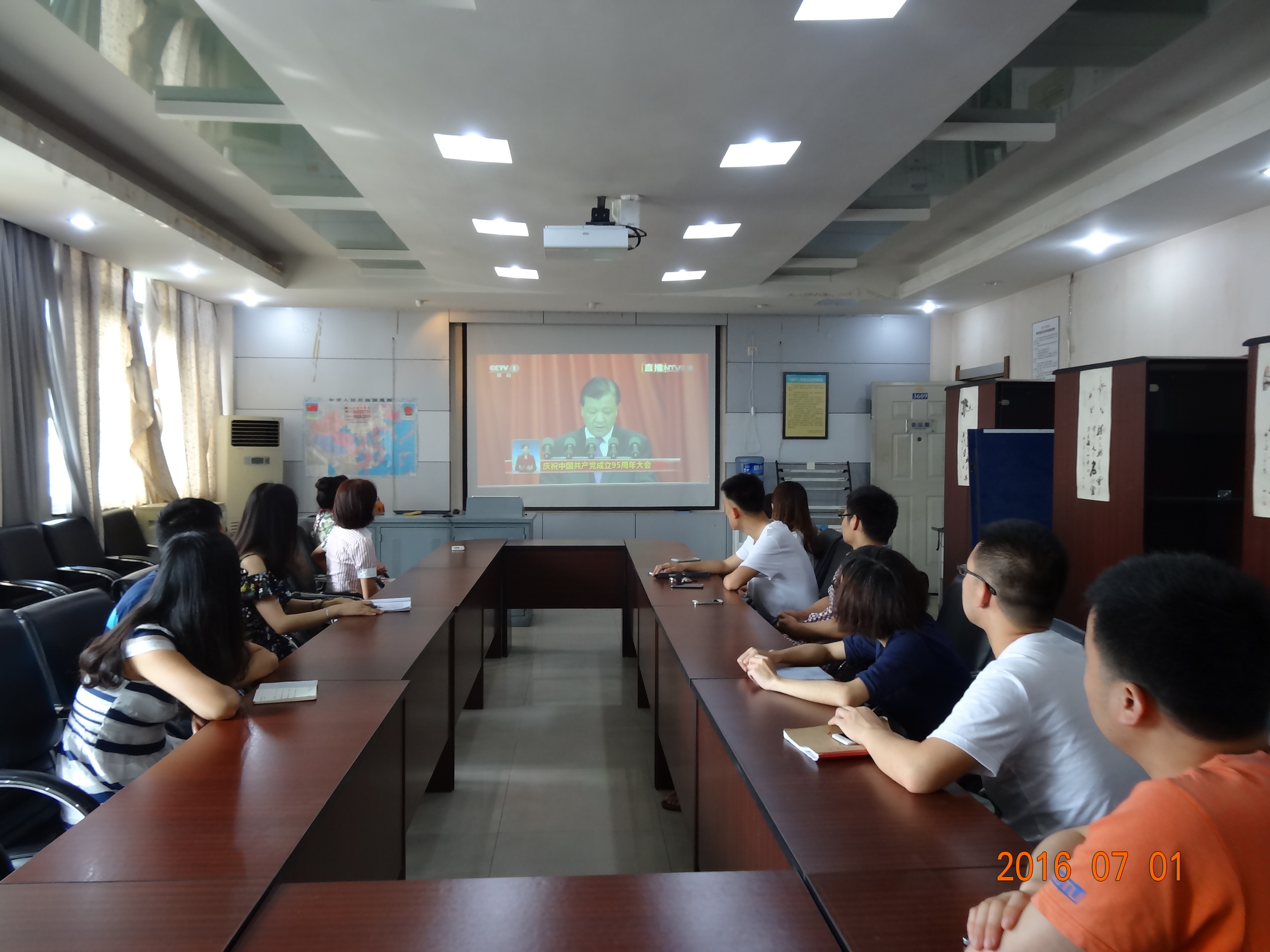 为迎接建党95周年,按校党委统一部署,7月1日上午,麻豆社 党委组织学院党员干部、师生代表在3609集体观看了中国共产党成立95周年大会现场直播视频。学院党委书记李卓慧、党委委员贺妍、办公室主任陈琳、研究生党支部书记吴润、李祯、本科生党支部书记黄国强,以及师生代表20余人观看了视频。与此同时,学院师生党员还通过网络形式,在办公室、实验室、宿舍等地收听收看了直播。