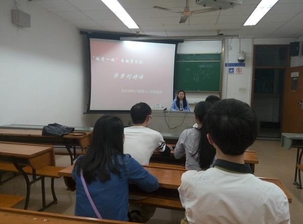 2015级药学硕士2班党支部在九里校区逸夫馆4304A室举办了支部集体学习。此次学习的主题为“两学一做”——学习习近平总书记系列重要讲话”,以会议讨论的方式进行,学习内容包括《习近平总书记重要讲话文章选编》《习近平总书记系列重要讲话读本(2016 年版)》《习近平谈治国理政》“习近平总书记在庆祝中国共产党成立95周年大会上的讲话”和《习近平关于科技创新论述摘编》等。