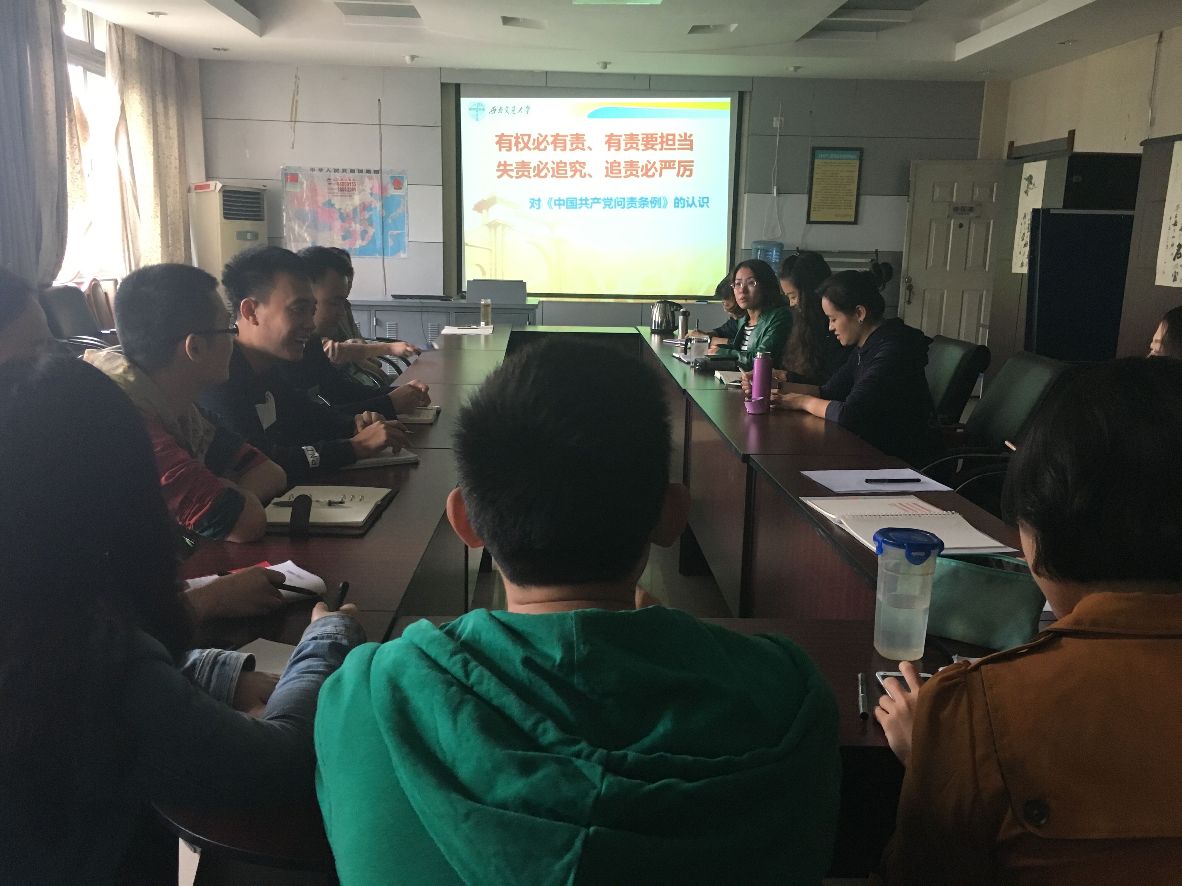 然后,党委委员李卓慧主讲了《中国共产党问责条例》,她详细讲解了《中国共产党问责条例》的意义、依据、指导思想,问责情形、问责方式、问责执行等内容。特别强调了问责条例堪称全面从严治党的一件利器,问责条例的出台有助于进一步增进共产党人的责任意识,激发共产党人的担当精神。