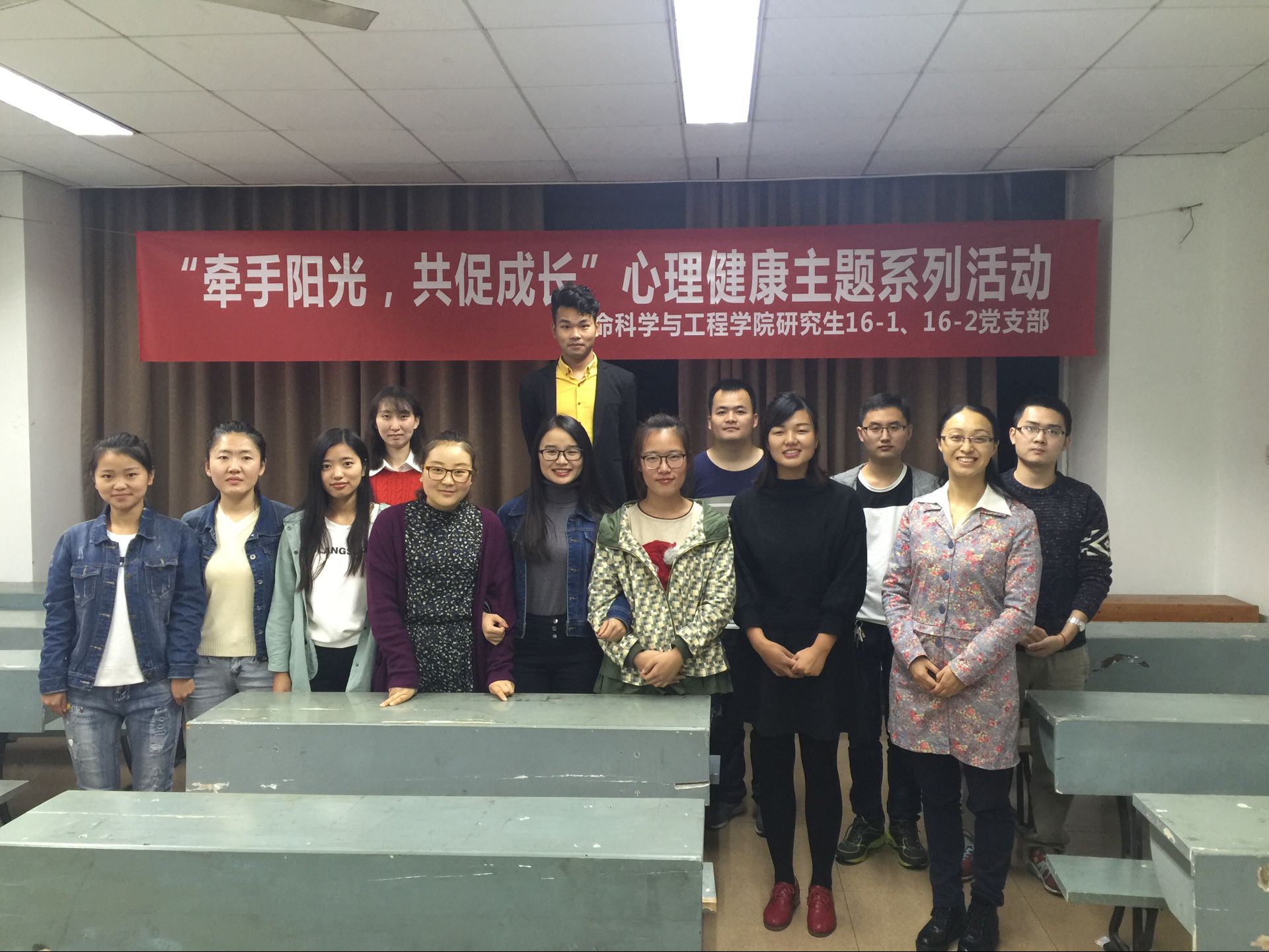 研究生16-1、16-2党支部联合举办的校级党支部示范活动——“牵手阳光,共促成长“心理健康系列活动之主题讲座在4305B进行。此次讲座邀请到心理咨询中心唐静老师进行主讲,支部全体党员和积极分子参加了讲座。