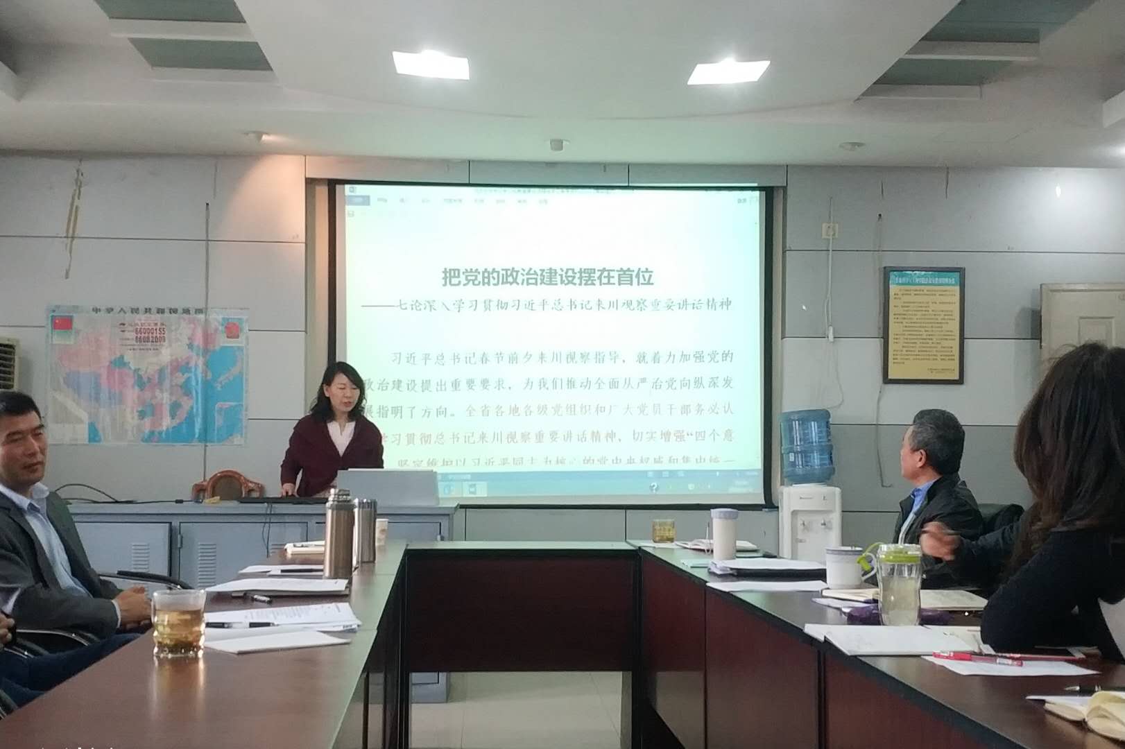 党委副书记罗妍妍同志首先介绍了习近平总书记2月10日-13日来四川视察的概况,并传达四川省委、学校党委关于学习贯彻习近平总书记重要讲话精神的指示和要求。随后,党委委员贺妍同志带领与会人员集中学习了习近平总书记来川视察的重要讲话精神。她指出各级领导干部、全体党员和教职工在学习上一定要把握习近平总书记重要讲话中“推动治蜀兴川再上新台阶”的总体要求和五个方面重点工作的宏观布局,结合贯彻落实党的十九大精神,持续在学懂弄通做实上下功夫,做到知行合一、学以致用。在学习中,她着重传达了习近平总书记重要讲话精神的主要内容,从把推动高质量发展贯彻到经济工作全过程各方面、把打赢脱贫攻坚战作为全面建成小康社会的底线任务和标志性目标、实现乡村振兴开创“三农”工作新局面、以人民为中心大力推进民生工作、始终将党的政治建设放在首位等五个方面进行了讲解。与会人员集中学习后进行了热烈讨论。