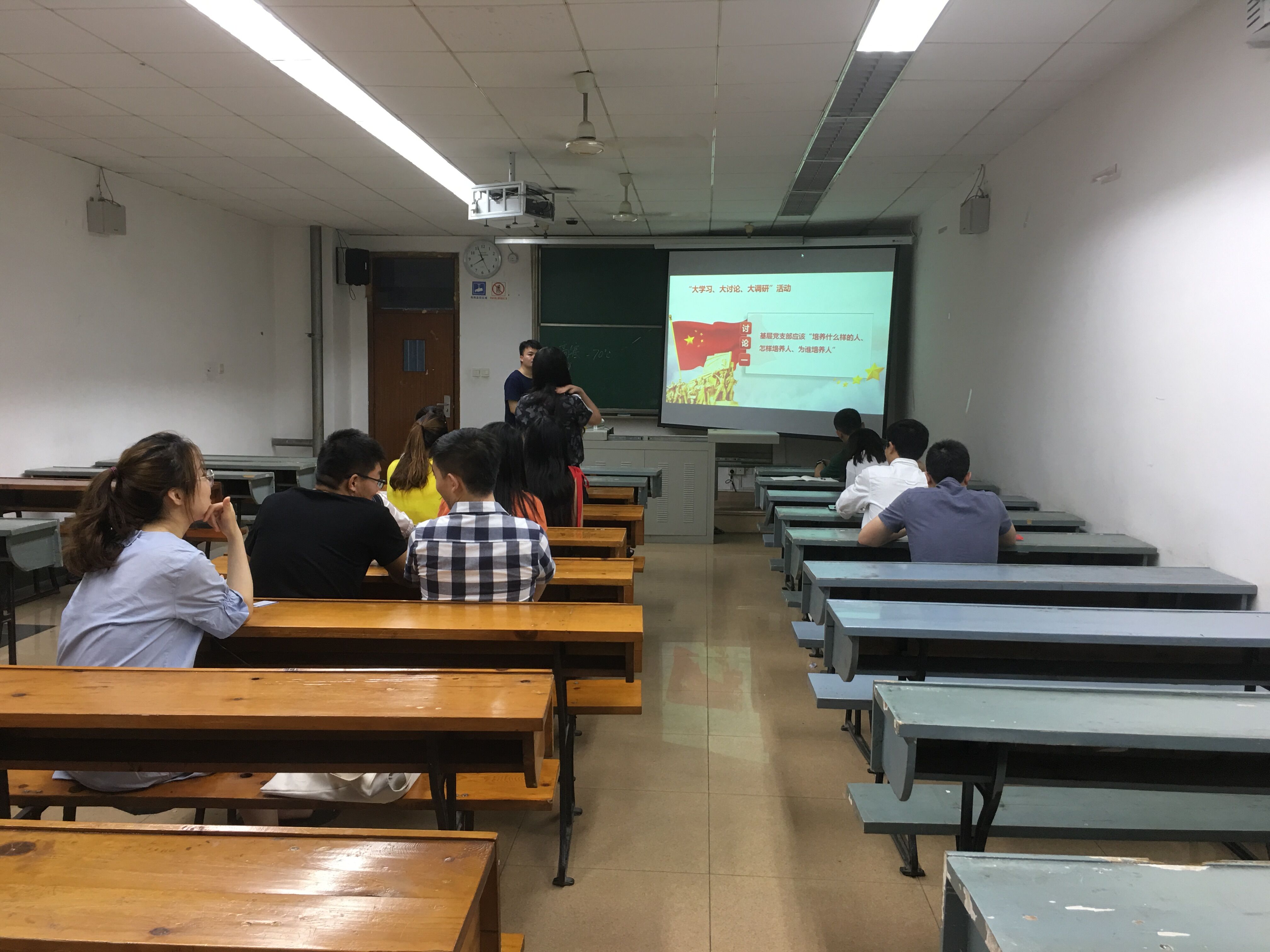 学院2016级硕士党支部于2018年6月13日晚在4305B教室召开主题党日活动, 围绕“基层党支部应该‘培养什么样的人、怎样培养人、为谁培养人’” 进行专题大讨论。会议由支部书记韦乐华同志主持,支部全体党员参加了学习讨论。