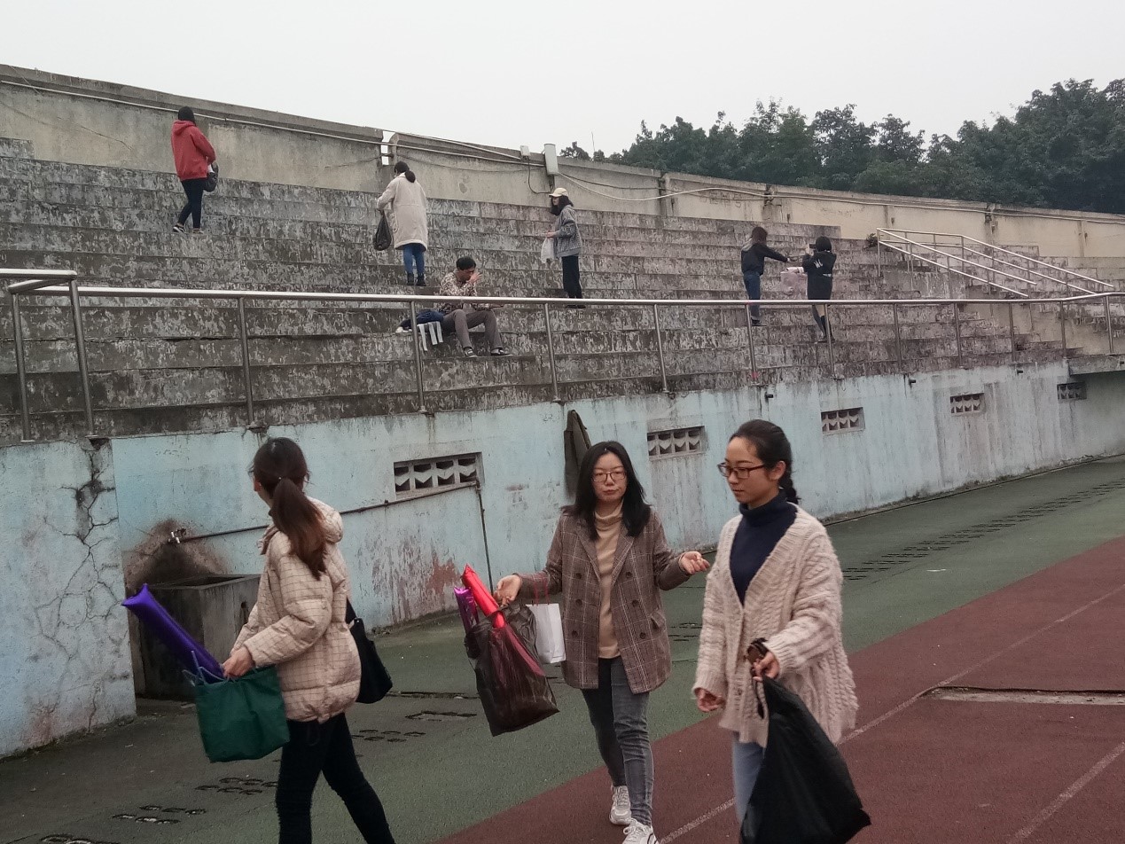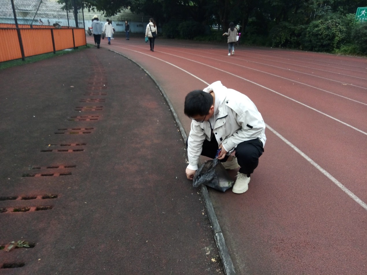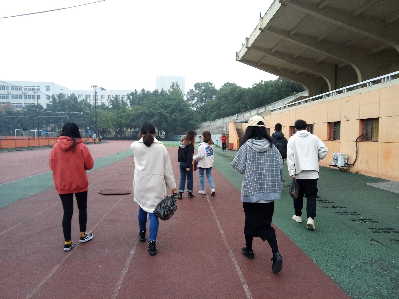 本次活动的内容是打扫田径场,对操场上的垃圾进行捡拾,为同学们营造一个干净整洁的运动场所。同志们自带了垃圾袋,手套等,于三食堂门口集合完毕后,一同前往田径场,并沿途捡起路上的垃圾。