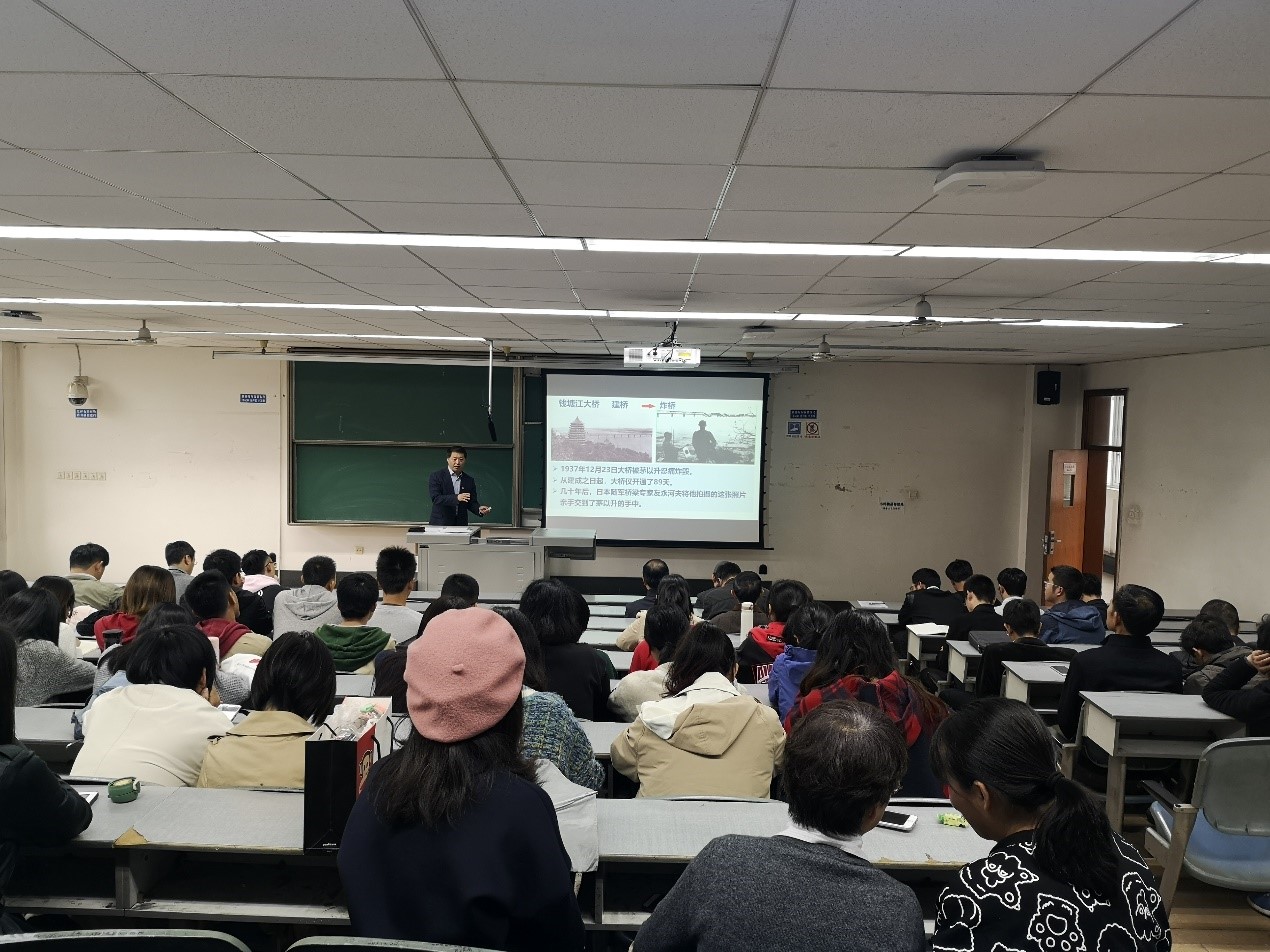 党委书记葛永明同志以“在工作中坚守初心,在岗位上践行使命”为主题,结合自己的学习体会,为全院师生党员讲授专题党课。