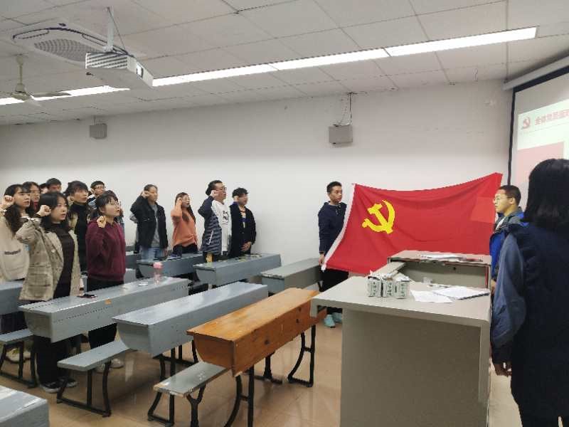 会议通过差额选举的方式进行无记名投票,选举产生了左锐、万珍伶、温鹏、李建鹏四名党支部委员,左锐任党支部书记、万珍伶任党支部副书记。会议最后,2020级硕士研究生党支部全体党员面向党旗郑重宣誓,重温入党誓词。