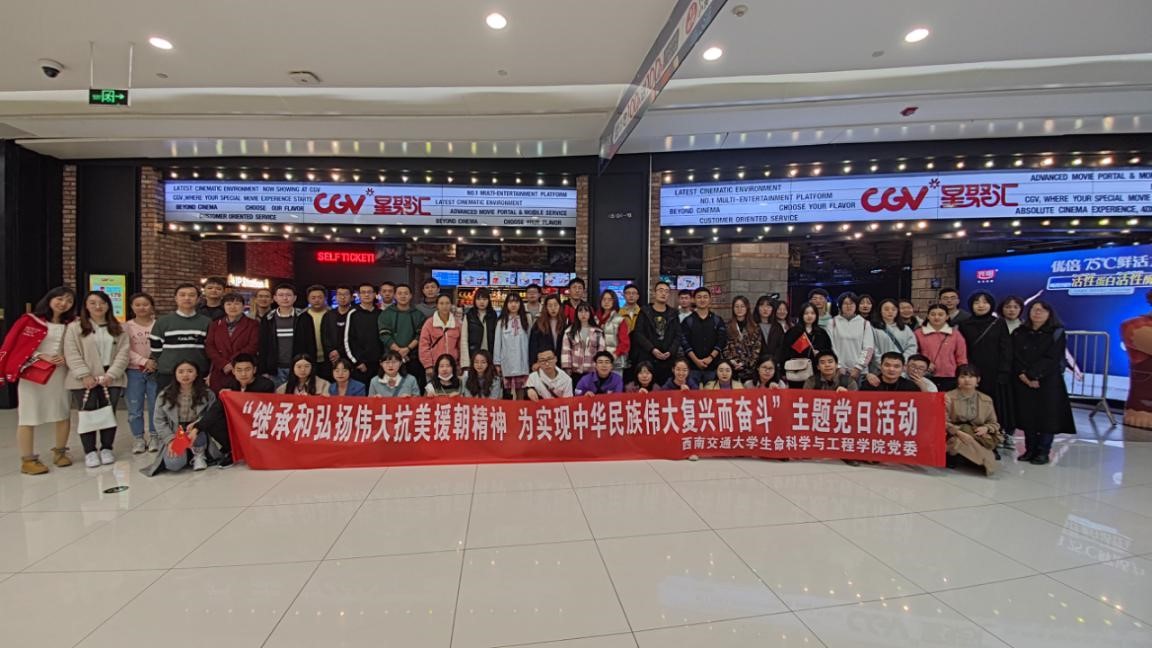 此次组织生活会是该支部成立以来的第二次活动。此次活动的内容是在金牛凯德CGV影城参加观影活动,电影的名称为《金刚川》,看的同学们热血沸腾。后面也请同学们简单谈了一下观后感。