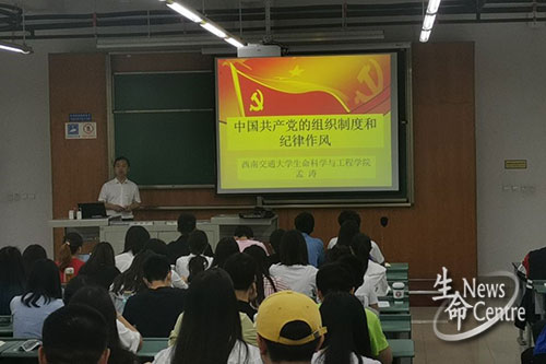 党委书记葛永明、副书记赵钢锋、党委委员闫智勇、生物工程系党支部书记孟涛主讲。