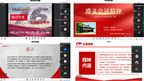 党支部四个学习小组于11月12日至13日相继召开线上会议,以组长讲微党课的形式分别对抗战精神、遵义会议精神及红船精神进行了学习。四位组长前期准备充分,党课内容丰富,形式生动活泼,使得党员同志们对红色精神的内涵有了深刻理解。