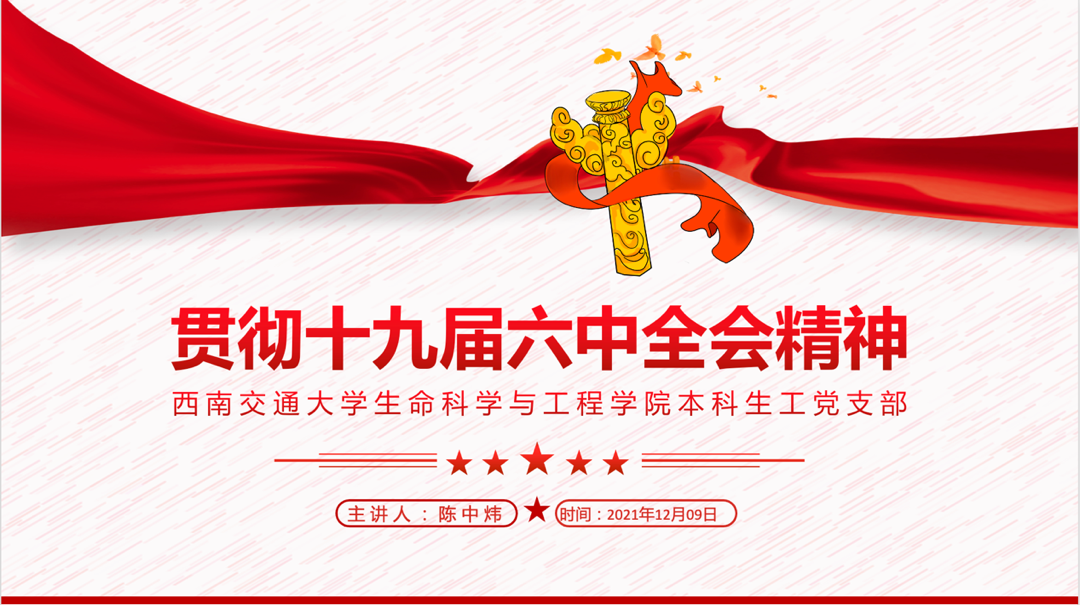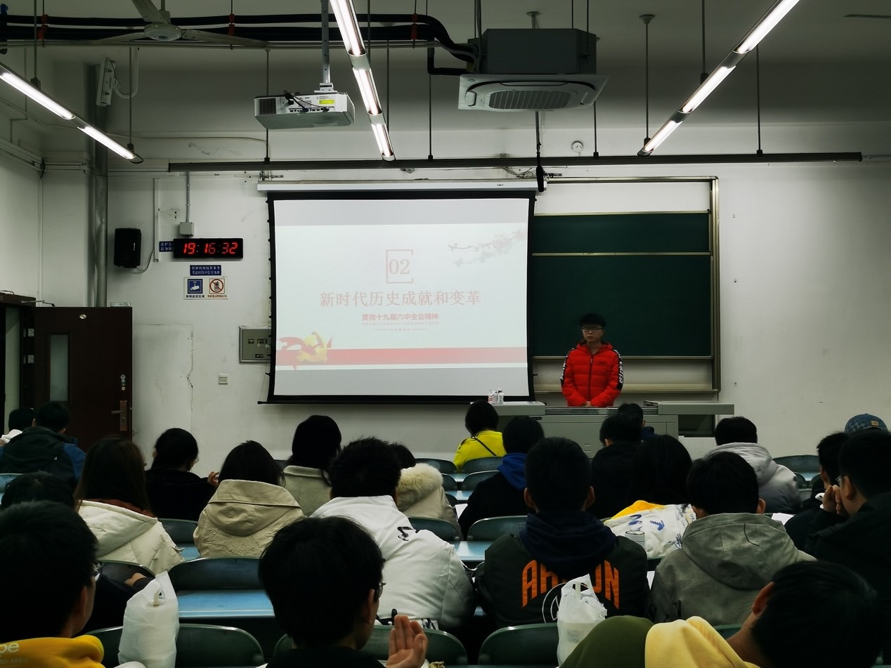 本科生工党支部开展了“贯彻十九届六中全会精神”主题学习,参会人员有学院党委副书记、纪委书记赵钢锋老师、专职组织员孔琳老师、本科生物工程党支部书记胡慧怡老师以及53名学生党员、预备党员、积极分子,会议由陈中炜同志主持。