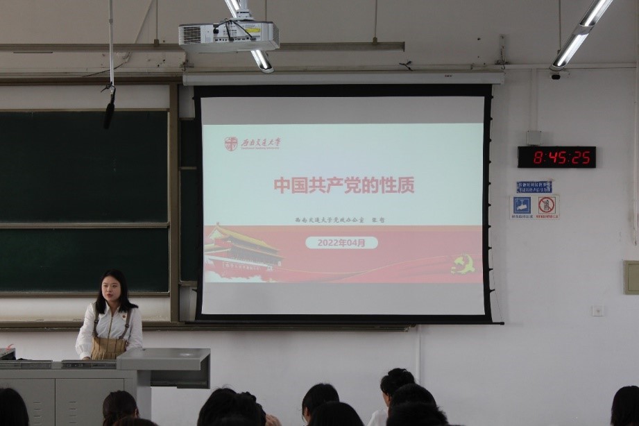 杨都强为积极分子们讲述本次培训的最后一个专题——《中国共产党党员的权利与义务》。在杨老师的讲述下,同学们感受到我们的国家在中国共产党的领导下的巨大改变,并使同学们明白“初心易得,始终难守”这个道理,从而了解中国百年巨变中的艰辛与不易。他用自身的例子来生动地讲授了一个党员应该时刻将“为人民服务”谨记于心,同时也应当在学习生活过程中不断完善自身,了解时事、关心国际局势。