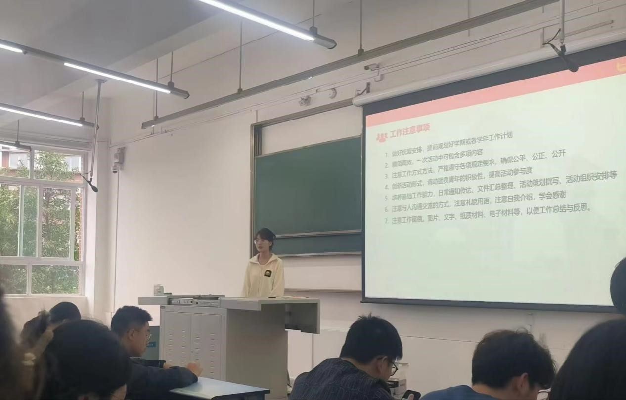 本次培训先由许青老师进行思想工作指导,着重强调班团干部们要做好统筹安排,提前规划好工作计划,注意工作方式方法,创新活动形式,调动团员青年的积极性,提高活动参与度;同时要求班团干部们注意与人交流的方式,注意工作留痕,及强调了工作总结与反思的重要性。