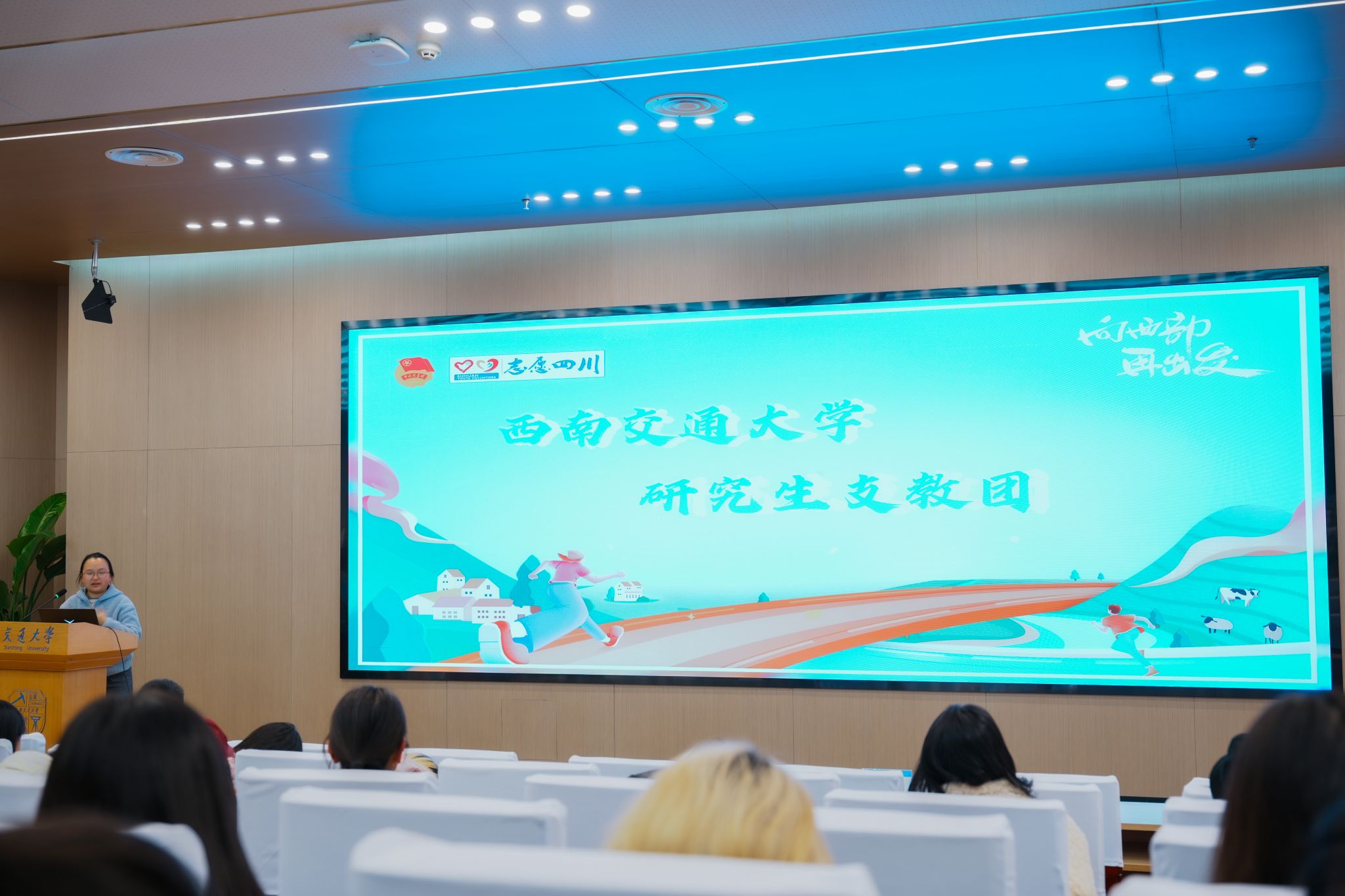 接着,省青马学员、校青年讲师团成员周朝梦老师为大家详细介绍了西部计划,着重介绍了研究生支教团项目。她表示这些项目为有志于教育事业的同学提供了广阔舞台,也为社会发展贡献了青春力量。通过参与这些项目,同学们可以在教育事业中发挥重要作用,同时在实践中锤炼自己。周老师鼓励同学们将个人发展与国家需求结合,让青春在祖国最需要的地方绽放光彩。