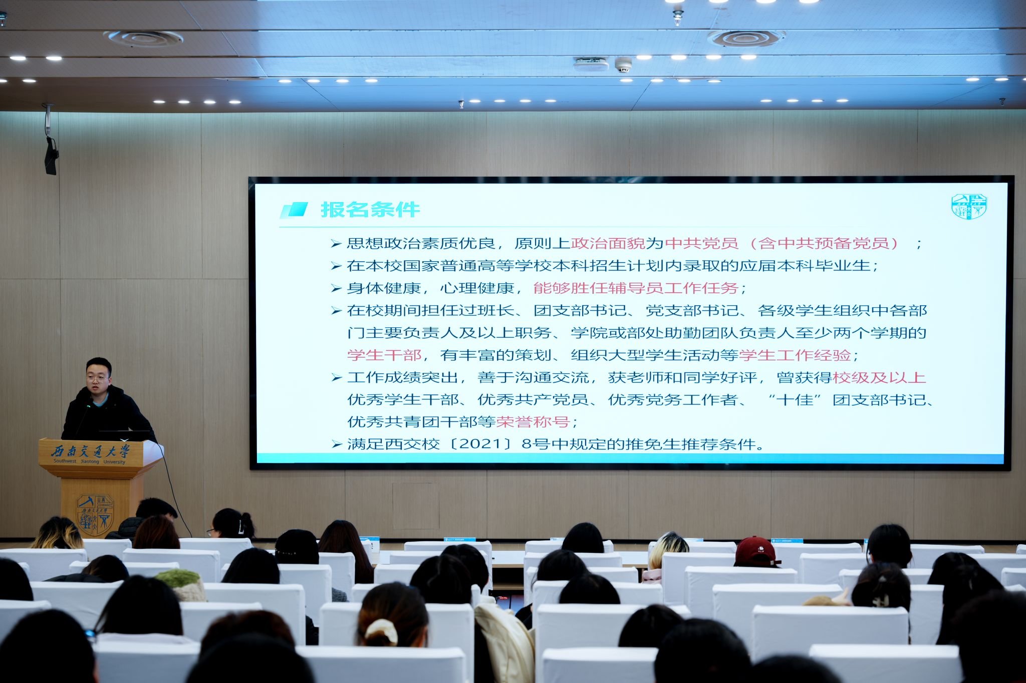 最后,2022级辅导员潘星宇老师围绕安全问题与期末考试作了重要提醒。他重点强调冬季防火、防盗、防诈骗及意外事故的防范,并提醒同学们要提高安全意识、筑牢安全防线。同时,他还就期末考试的学术诚信和考场纪律提出严格要求,号召大家恪守基本准则,杜绝作弊行为。