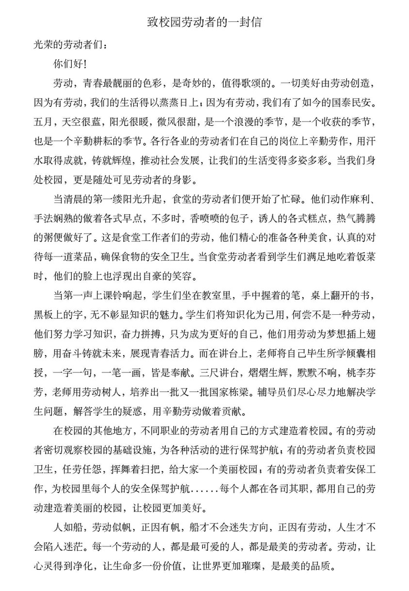 5月4日至5月28日面向全院同学进行了“记录劳动之光,闪耀青春花路”劳动文化作品评比活动的作品征集,同学们以青春为笔,以劳动为墨,用笔尖描述自己心目中的劳动人物,致敬辛勤的劳动者,表达崇劳、敬劳之情,传承劳动情怀,营造校园新风尚。