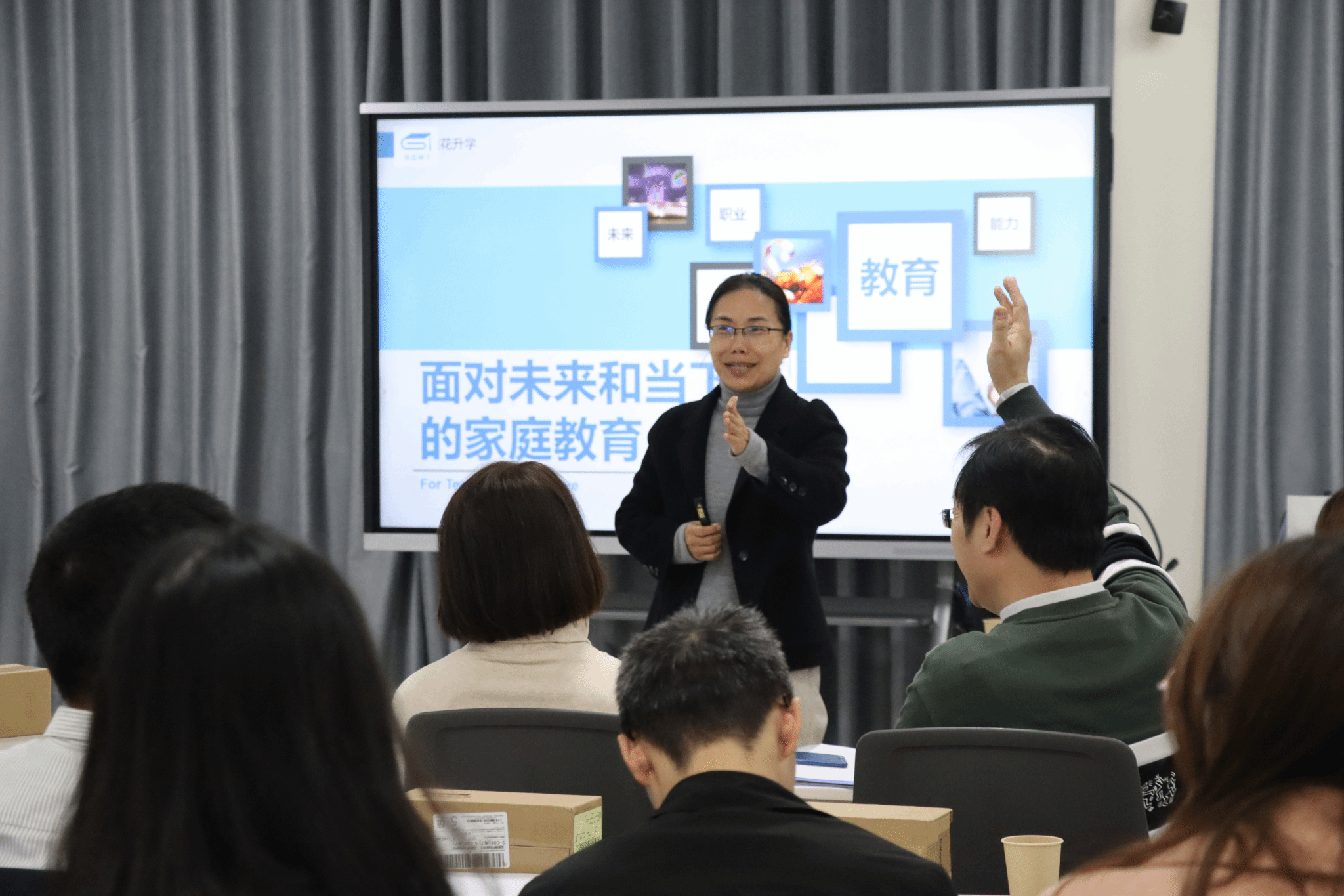 然后,高级家庭教育指导师、中国儿童基金会护航计划四川项目组组长、畅销书作家陈筱芝老师带来了“面对未来和当下的家庭教育”专题讲座。陈筱芝老师围绕未来需要什么样的孩子,阐述了社会人才需求和家庭教育之间的关系,分享了如何帮助青少年更好地适应科技快速发展的社会、如何从“以终为始”的角度来思考和培养孩子,以及如何进行有效的家庭沟通。她以其独到的视角,结合鲜活的案例,与现场老师热情互动,让参加本次活动的老师们收获颇多。