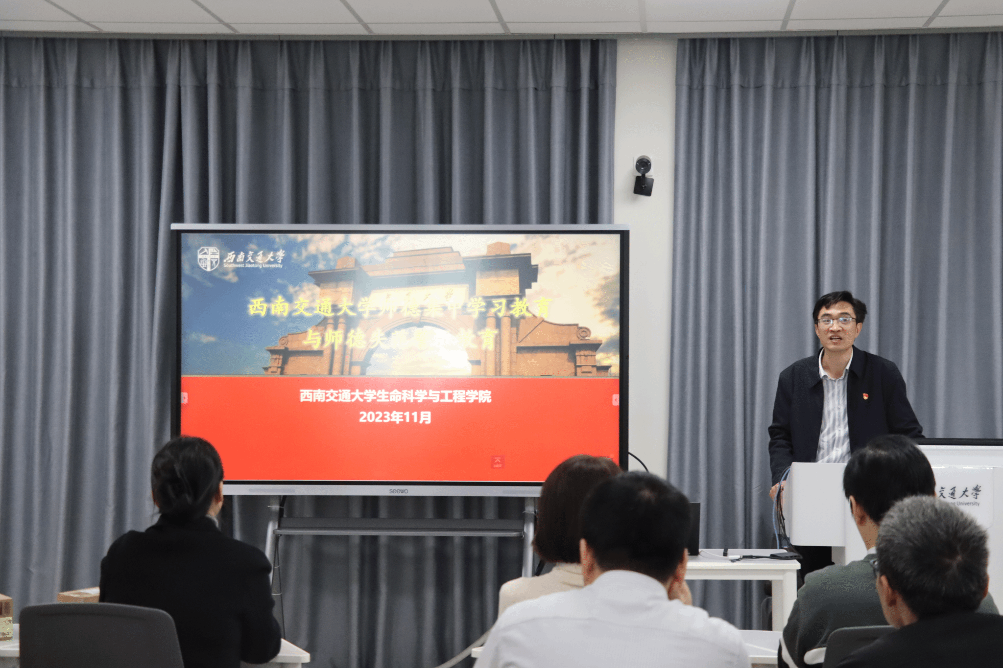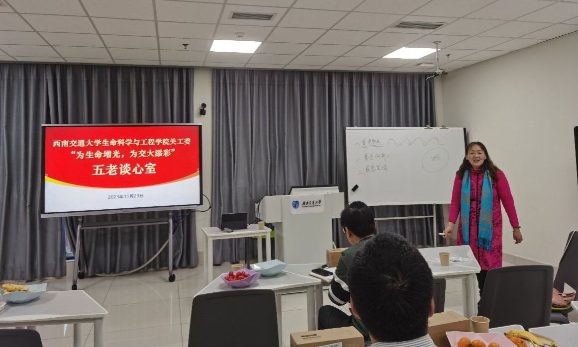 党委、关工委、院工会在犀浦校区举办了“为生命增光,为交大添彩”教师工作坊主题活动。学院党委书记李卓慧,党委副书记、纪委书记、工会主席朱炜,副院长李遂焰,院长助理黄新河、华晶晶、王毅及学院部分教师参加本次活动,活动由朱炜副书记主持。