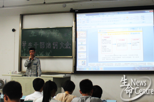 团委书记崔健老师和副书记孔琳老师组织讲说,各党支部干部及学生组织干部按时参加了本次培训会。
