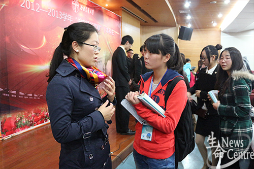 11月14日,2012--2013学年“竢实扬华奖章”(本科生)评选答辩会于图书馆一号报告厅顺利举行。校党委副书记朱健梅、副校长冯晓云、教务处、招生就业处、实验室及设备管理处、学生工作处、国际合作与交流处、校团委等部门的领导,以及各学院(中心)学生工作负责人、教师代表和本科生代表参加评选答辩会并担任评委。麻豆社