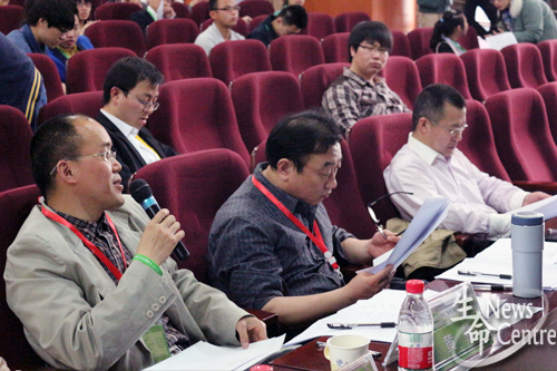 走上讲台的第一组选手研究课题是“成都市豆浆品质现状及专用大豆资源筛选”。选手首先从安全性和材料两方面介绍了豆浆品质现状,接着,又讲述了他们对适合生产豆浆的大豆原料的筛选过程。评委对他们提出的转基因大豆的安全性进行了质疑,面对评委们,选手沉着冷静、据实应答,完美地完成了他们的答辩。