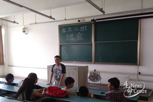 14级生物工程二班于X2317举行了学年总结与班委换届会议。到场嘉宾为14级辅导员魏源成以及2014级朋辈导师李燕娜、邵威。班级成员共28人,实到25人。