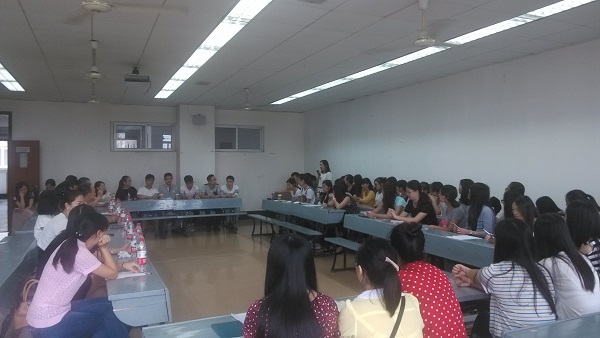 10:20,见面会正式开始,在主持人贺妍老师的介绍下,同学们认识了出席会议的学院领导和老师。之后便是同学们的自我介绍环节。为鼓励同学们放下拘谨、敞开心扉,贺妍老师首先向在场的同学做了精彩的自我介绍,会场气氛一下显得轻松融洽起来,同学们都一一起立,大方自信地进行自我展示,不时有幽默风趣的发言出现,引来场上的阵阵欢笑。