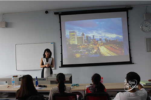 首先,Peace Li结合2013级中美班在GSU的学习情况,针对2014级学生可能面临的问题进行了讲解,同时对GSU进行了全面而细致的介绍,包括:校园基础设施、地理环境、学费和奖学金情况,并列出GSU的优势专业排名。