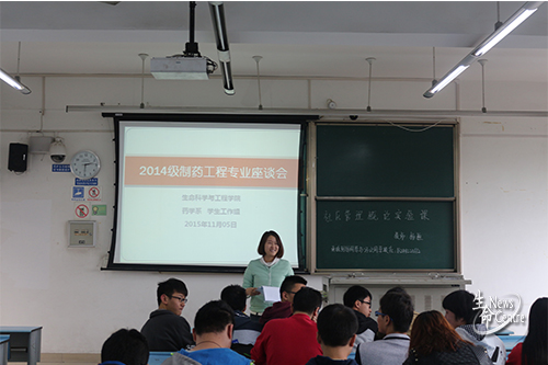 2014级制药工程专业座谈会在X2537召开,参加此会议的嘉宾有药学系主任闫智勇教授,耿耘教授,吴晓青副教授,孙会丽讲师。此次座谈会由麻豆社