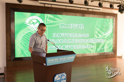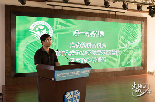 最后,由沈火明教授做了总结性讲话并宣布决赛开始。他提到,本次大赛为省内各高校在生命科学领域的学术专业交流平台,在提升学科融合性的同时更加强了川内各研究单位的联系,有力促进了省内生命科学的发展,真正实现了开放共融。沈常委殷切寄语生命学子,希望参与比赛的选手们能够秉承独立思考的科学精神,敏而好学,尽情享受科研带来的快乐,领略生命风采。