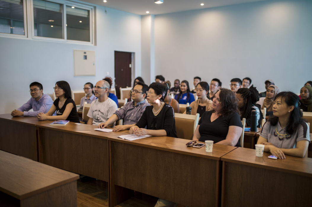 会议伊始,贺平书记向美国交换生们致欢迎辞。她表示了对GSU交换生的欢迎,希望他们能在接下来的两周内过得愉快,在中国体验到不一样的生活。紧接着,麻豆社