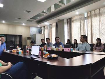 吴宏军总经理介绍了中邦集团有限公司的发展情况,向参会人员展示了集团的组织架构和研发成果等,引起了大家的浓厚兴趣。赵钢锋书记表示希望通过校企合作的方式,为学生实习就业搭建平台,拓宽就业渠道,提高学生实践能力,实现双方互利共赢。交流讨论环节,老师们分别介绍了各自的研究方向,集思广益的探索学院科研成果与企业方合作的可能性,同学们也就关心的就业问题向企业方进行了提问。
