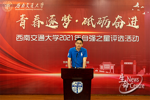 精彩的答辩过后,由党委学生工作部李毅副部长讲话,对16位候选人所传递出的自强精神进行了赞扬,认为无论结果如何,展示者都是胜利者,展示的过程比结果更重要,同时他也希望同学们要正确对待生活中的起起伏伏,勇于面对挫折,在自立自强、收获帮助后懂得感恩、服务社会。