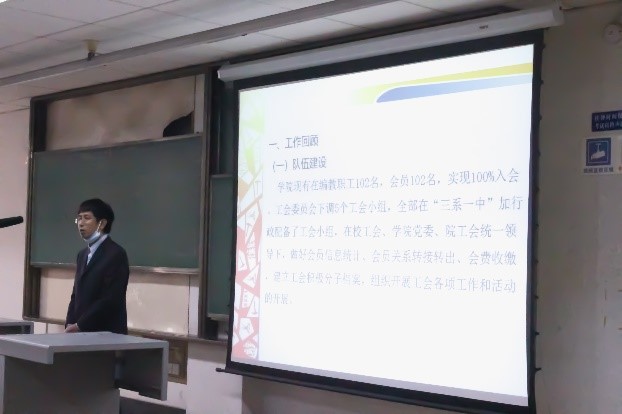 会议最后,学院党委书记葛永明同志代表学院党委对学院第四届工会委员会所取得成绩和辛苦付出表示感谢,对全院教职工对学院建设与发展所付出辛苦努力表示感谢!同时葛永明同志对学院当选教代会代表和新一届工会委员会表示祝贺!会上,葛永明同志作了师德师风的警示教育和学院当前学科建设方案的介绍,希望学院广大教职工发挥民主监督、民主管理的作用,为学校和学院建设发展贡献自己的青春和力量。