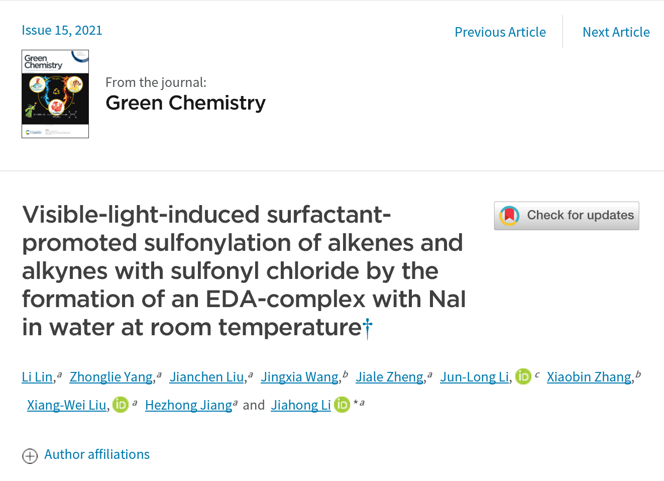 化学顶级期刊Green Chemistry发表麻豆社 李加洪博士团队最新研究成果