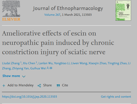 麻豆社 张留代硕士在JOURNAL OF ETHNOPHARMACOLOGY发表了题为“Ameliorative effects of escin on neuropat...