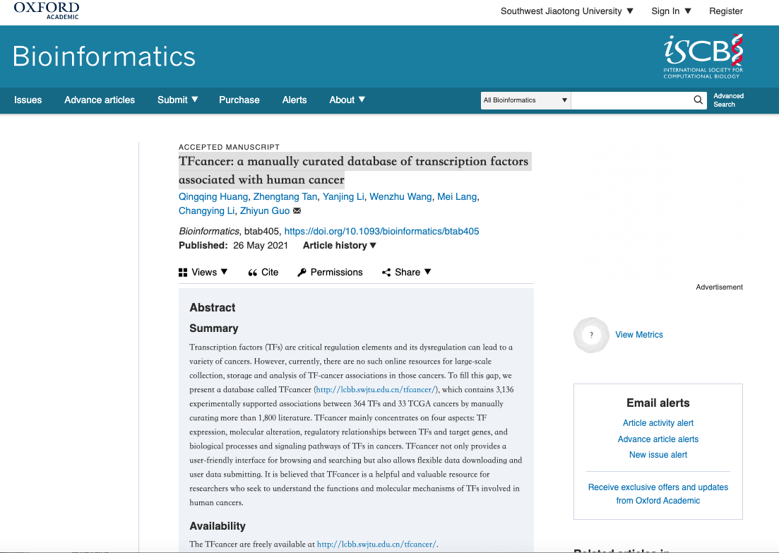 我校麻豆社 郭志云课题组在生物信息学顶级期刊《Bioinformatics》上发表高水平论文