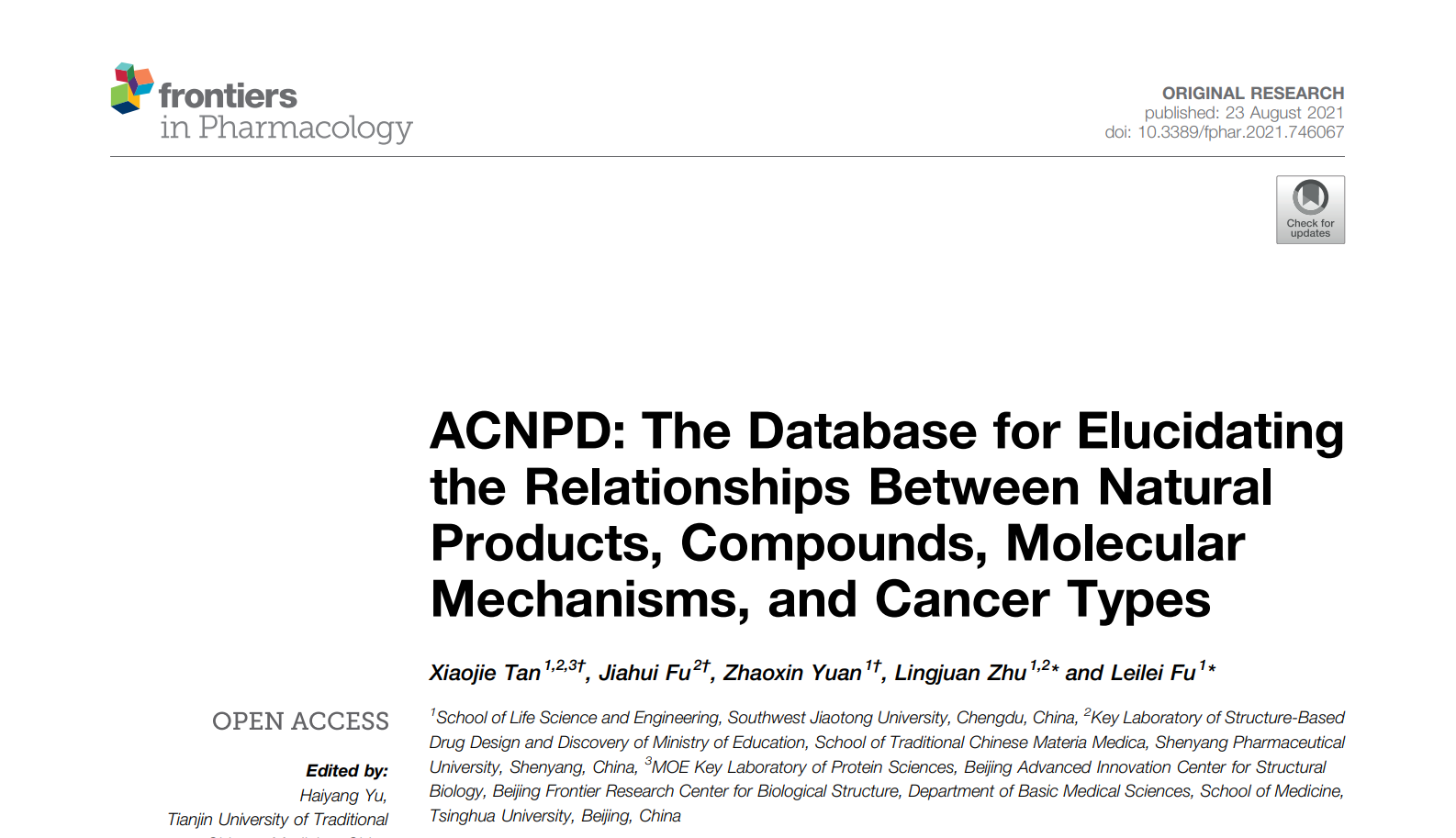 麻豆社 符雷蕾团队构建抗肿瘤天然产物数据库ACNPD