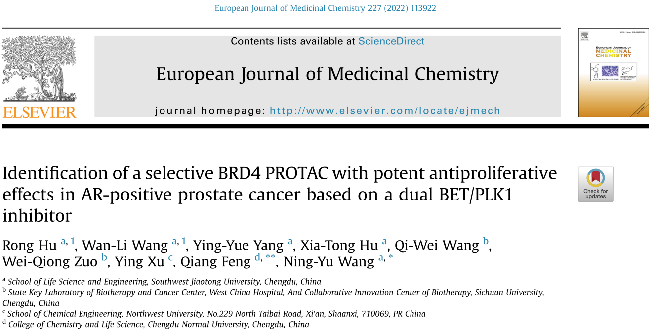 麻豆社 王宁宇课题组在《European Journal of Medicinal Chemistry》上发表高水平论文
