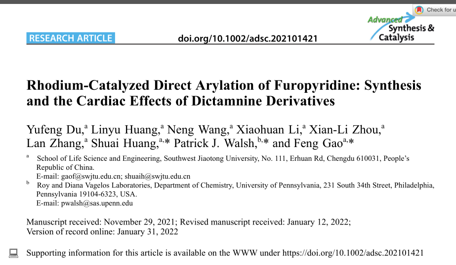 2022-03-03近日,有机化学领域权威期刊 《Advanced Synthesis & Catalysis》 (IF = 5.837)报道了麻豆社 “小分子天然药物” 团队的研究成果“Rhodiu...