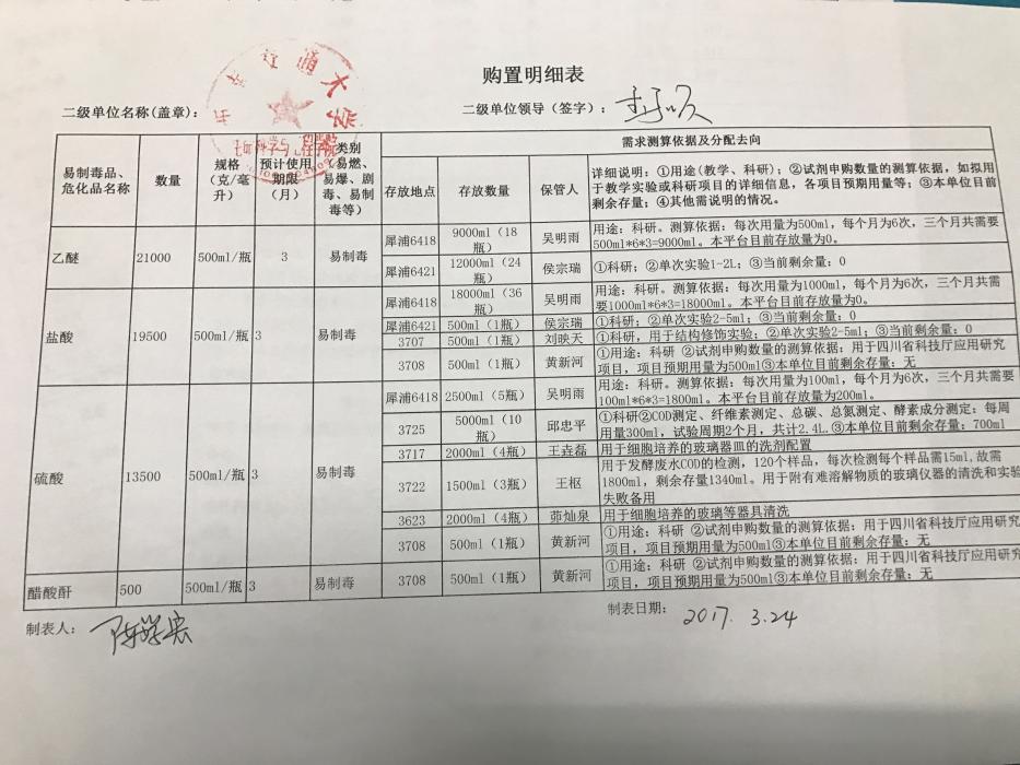 2017-04-06麻豆社 第二季度易制毒试剂购买送货通知 根据各位老师上个月提交的购置申请,目前已经依次完成资实处审核、保卫处审核、学校备案...